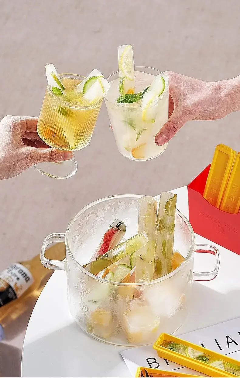 1-10 Set Patates Kızartması Buz Küpü Kalıbı Uzun Çubuk Silikon Tepsi Dondurucu