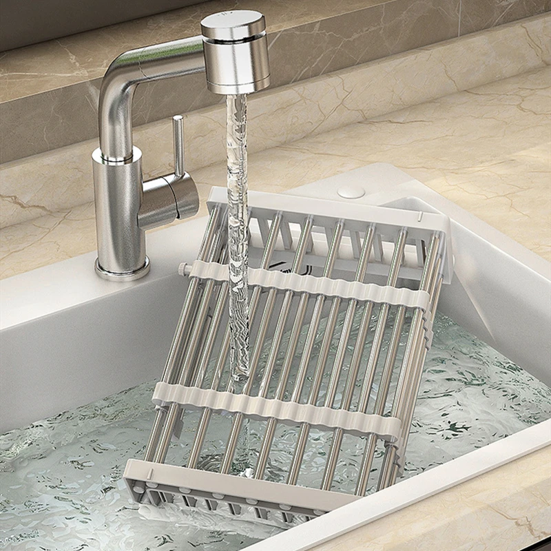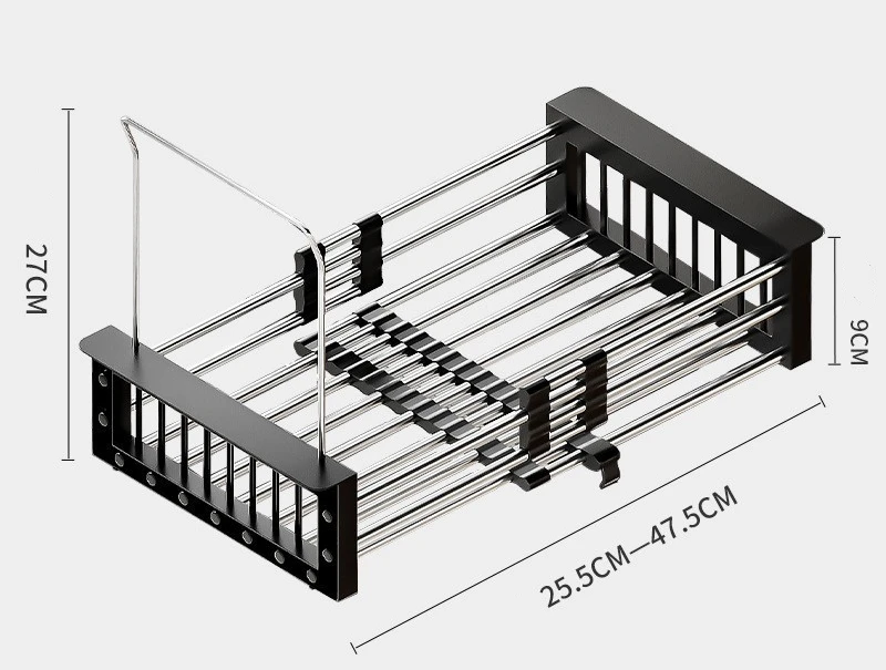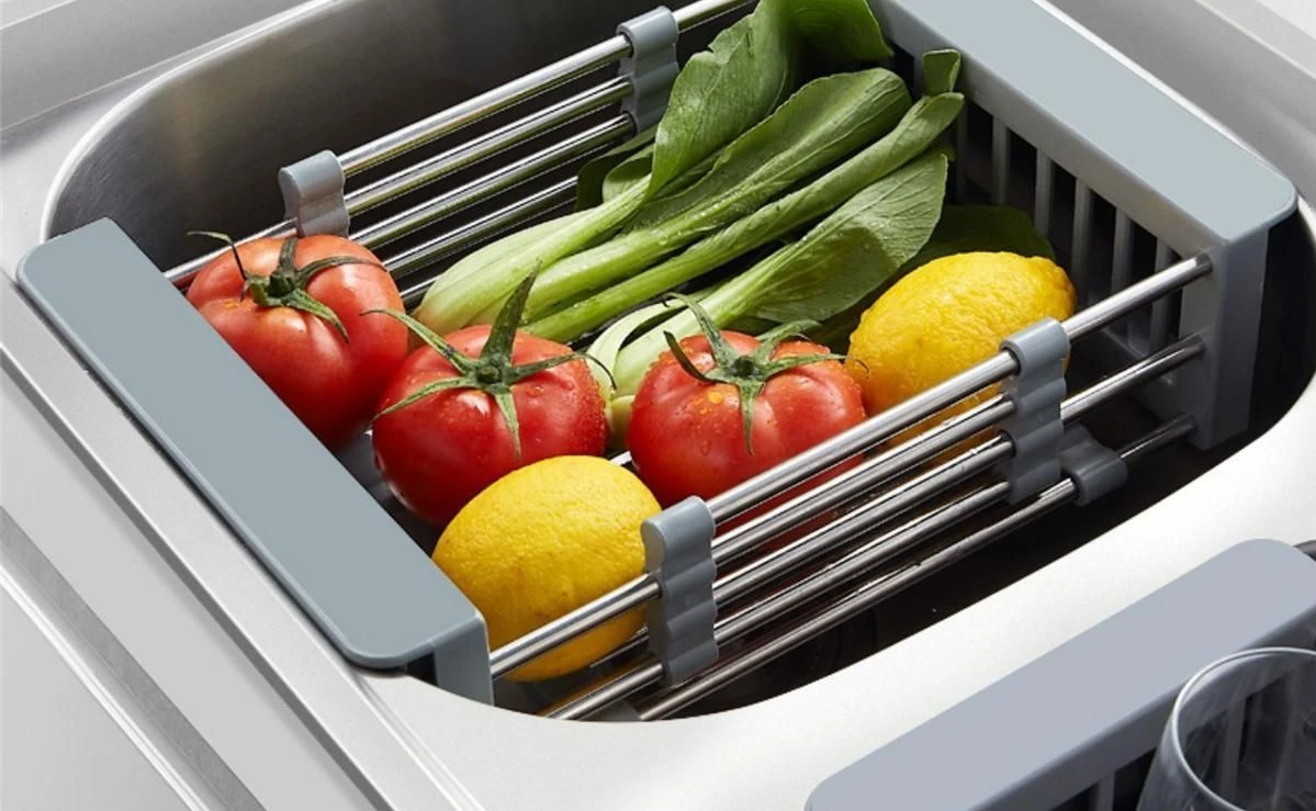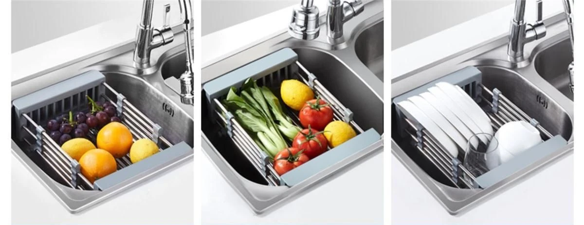Paslanmaz Çelik Uzatılabilir Bulaşık Kurutma Rafı Mutfak Lavabo Rafı Süzgeç Aletleri Teleskopik Meyve Sebze Yıkama Süzgeci