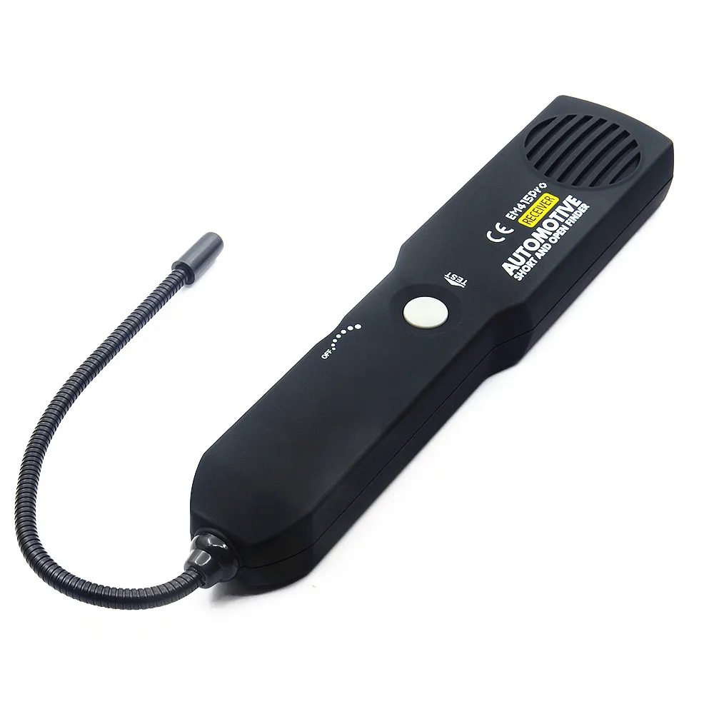 EM415PRO, bir devrenin açık olduğu yeri anında algılar ve sizi uyarır. Kısa devreleri, açık bağlantıları, kopuk kabloları, akım kaçaklarını ve hatta kabloları hızlı ve kolay bir şekilde tespit edebilirsiniz. Ayrıca, kabloları veya konektörleri esneterek aralıklı devre sorunlarıyla karşılaşabilir ve alıcının ses perdesinde bir değişiklik duyabilirsiniz; bu da genel durumu izlemenize veya sorunun yerini belirlemenize olanak tanır. Ayrıca, yön göstergesi ile kısa devrenin yönünü göstererek tahmin yürütmenize gerek kalmaz. Bu profesyonel alet, 6 ile 42 volt DC arasındaki voltajlara sahip her türlü devrede çalışacaktır. Otomobillerde, kamyonlarda, traktörlerde, teknelerde, karavanlarda vb. bulunanlar gibi... Geniş çalışma voltaj aralığıyla