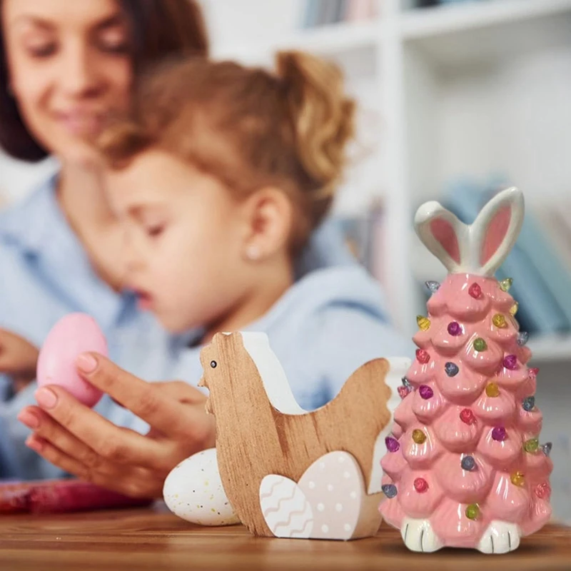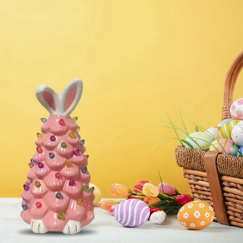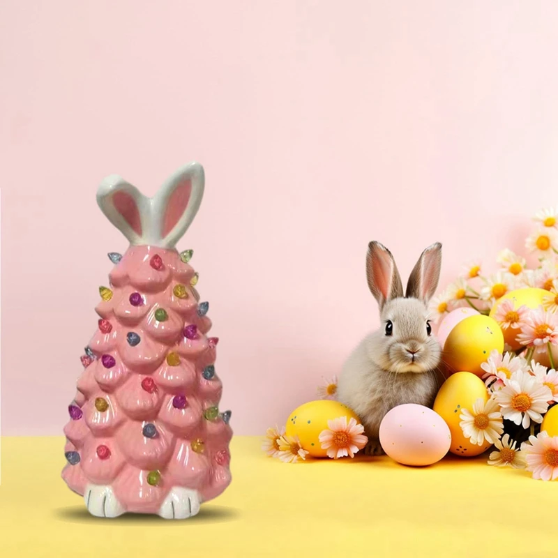 [TAVŞAN AĞACI] Ağaç, çok renkli ışıklarla ve tepesinde bir tavşan şapkası ile süslenmiştir! Bu komik bahçe cücesini dışarıya, ağaçlara, çiçeklere, pencere pervazına veya istediğiniz herhangi bir yere yerleştirin.