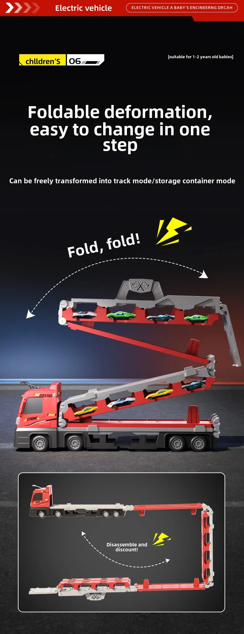 Katlanabilir Raylı Alaşımlı Dönüştürülebilir Taşıyıcı Kamyon Oyuncak Çok