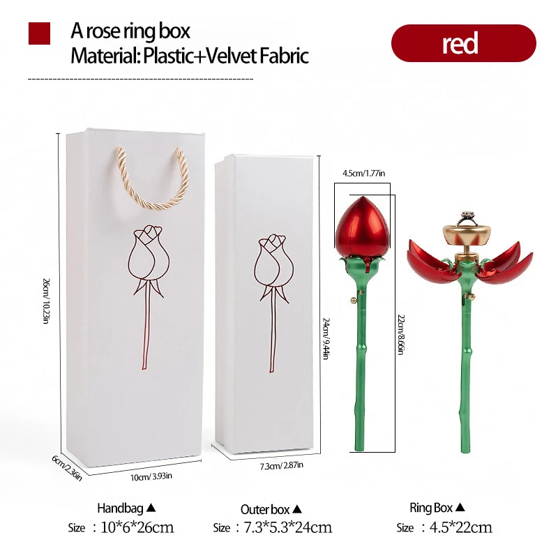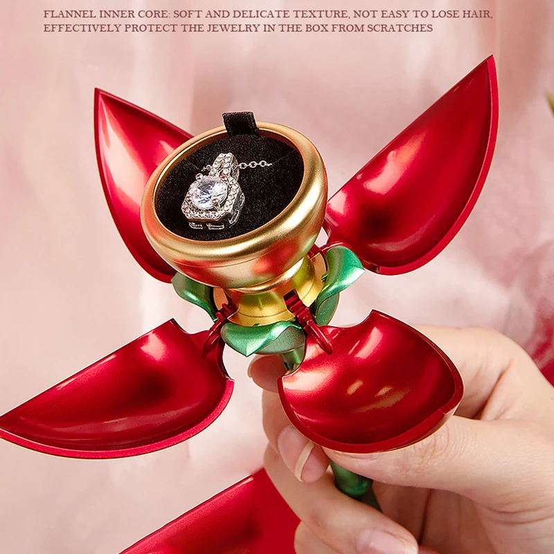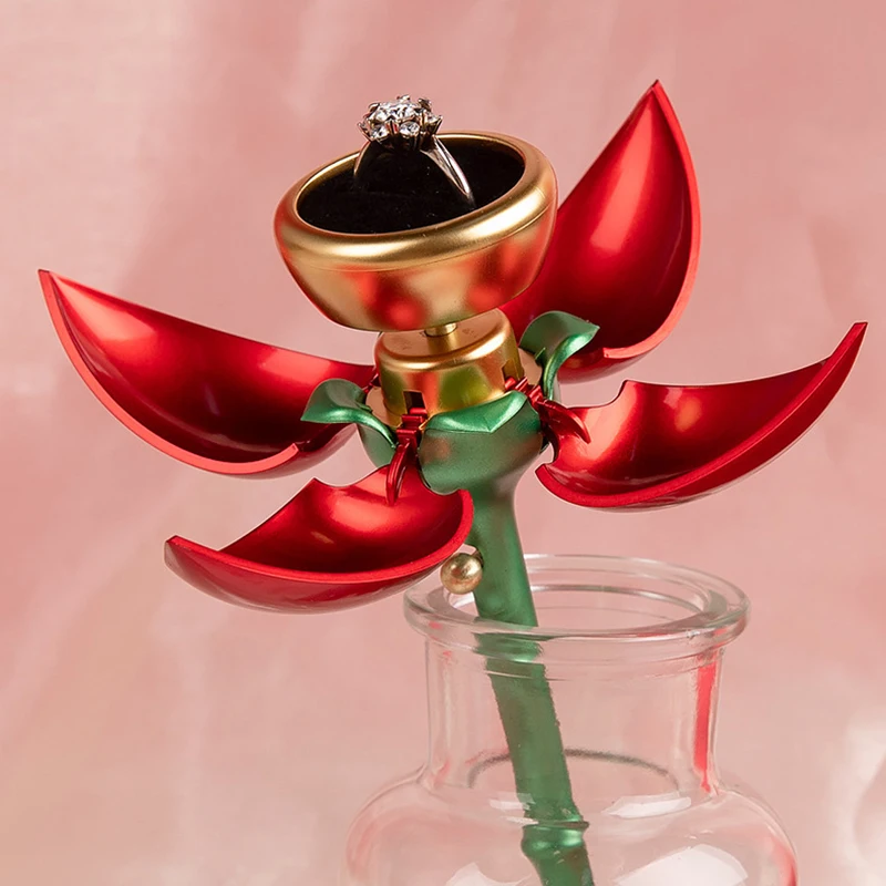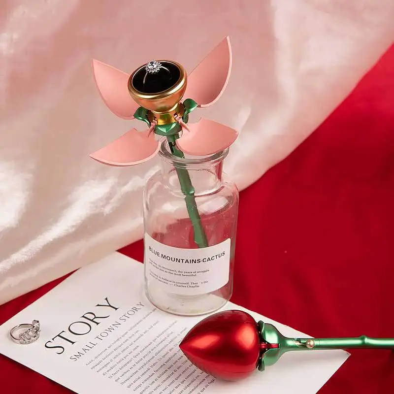 Yüzükler için Gül Şeklinde Mücevher Kutusu Kılıfı Otomatik Açılan Mücevher