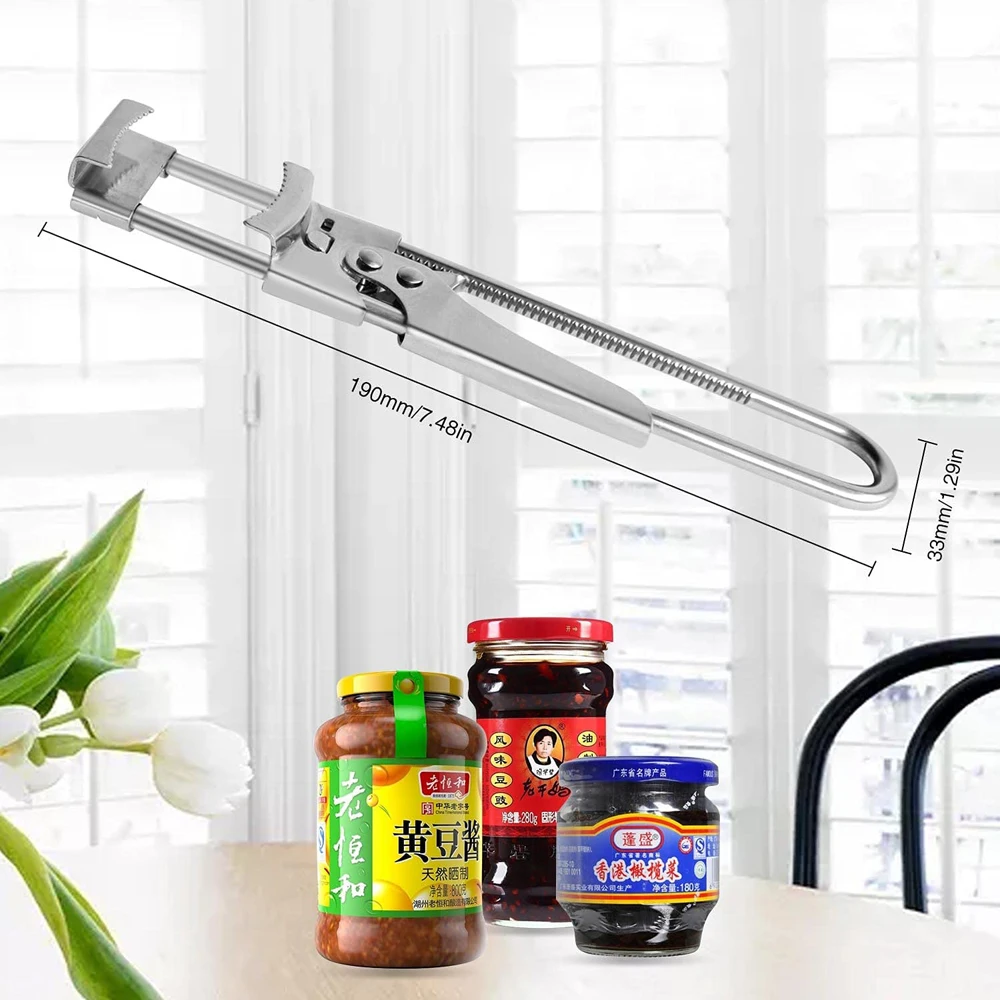 【İÇERİKLER】: 1X ayarlanabilir paslanmaz çelik kavanoz açacağı.