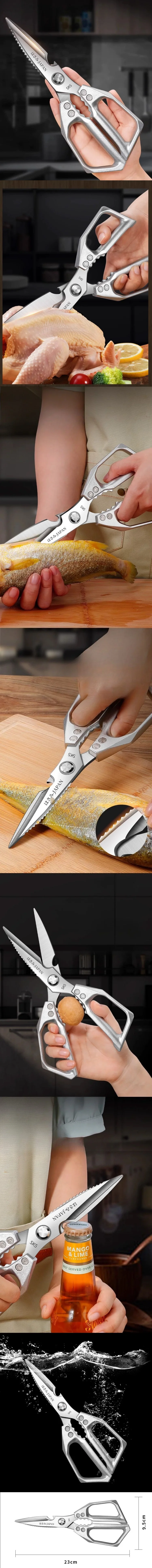 1、Heavy-Duty Stainless Steel Kitchen Shears:Multi-functional cutting power – tackle meat trimming, roast slicing, and bone-breaking tasks with ease. Durable, rust-resistant blades and ergonomic handles designed for home cooks and pro chefs seeking long-lasting performance.