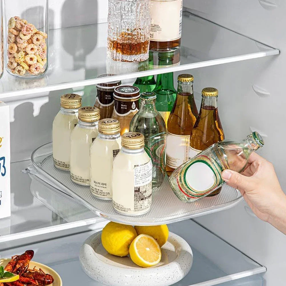 360 Derece Buzdolabı Düzenleyici Tepsi Kaymaz Servis Tepsisi Yerden Tasarruf Sağlayan Döndürülebilir Dikdörtgen Şeffaf Dolap Dolap Makyaj Masası İçin
