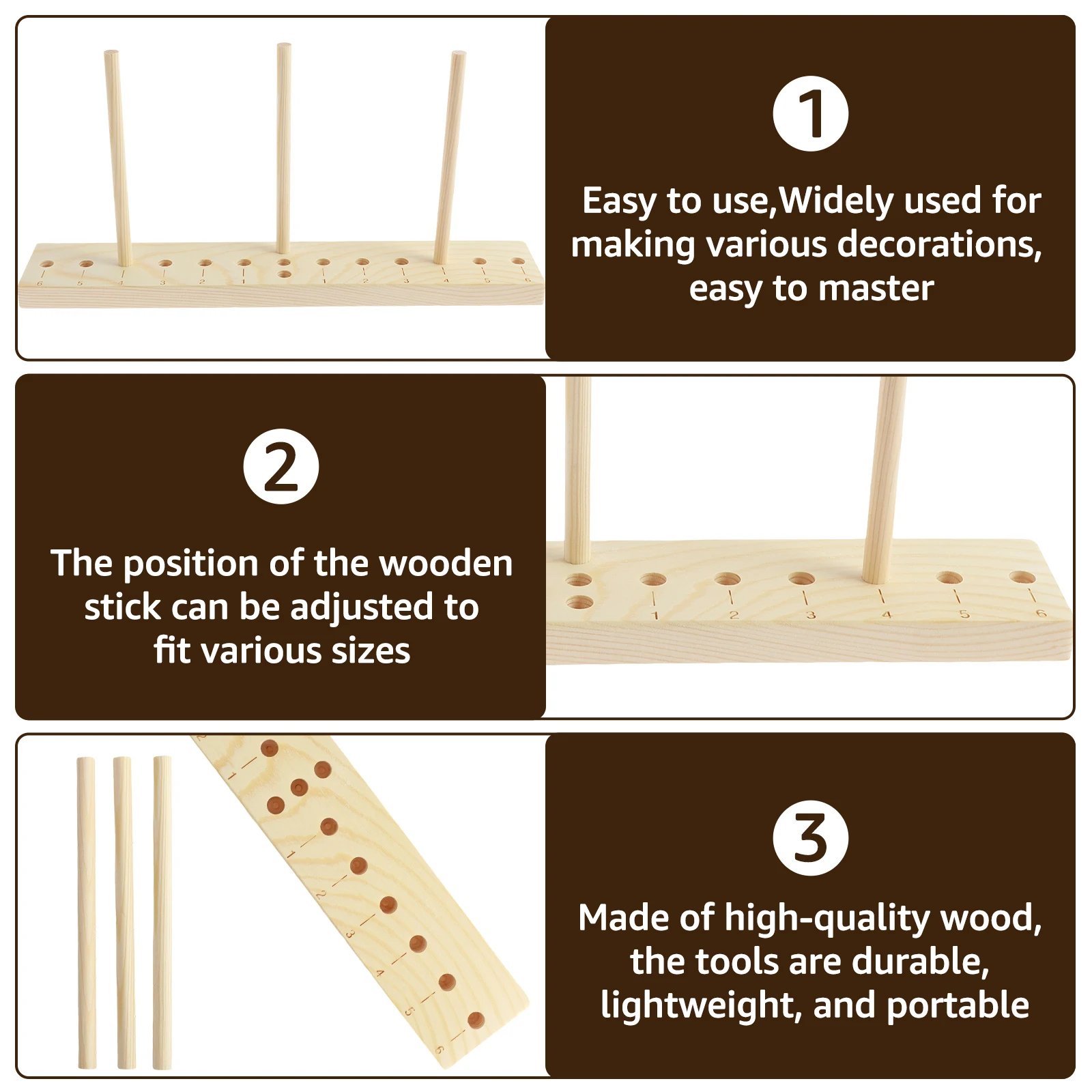 Güzel Fiyonklar Yapın: Bu üründe 3 set bulunur, her sette farklı boyutlarda fiyonk yapıcı ve çubuklar bulunur, ihtiyaçlarınıza göre seçim yapabilirsiniz. Farklı boyutlarda çeşitli yaylar yapmak için sadece tahta çubukların konumunu ayarlamanız yeterlidir.
