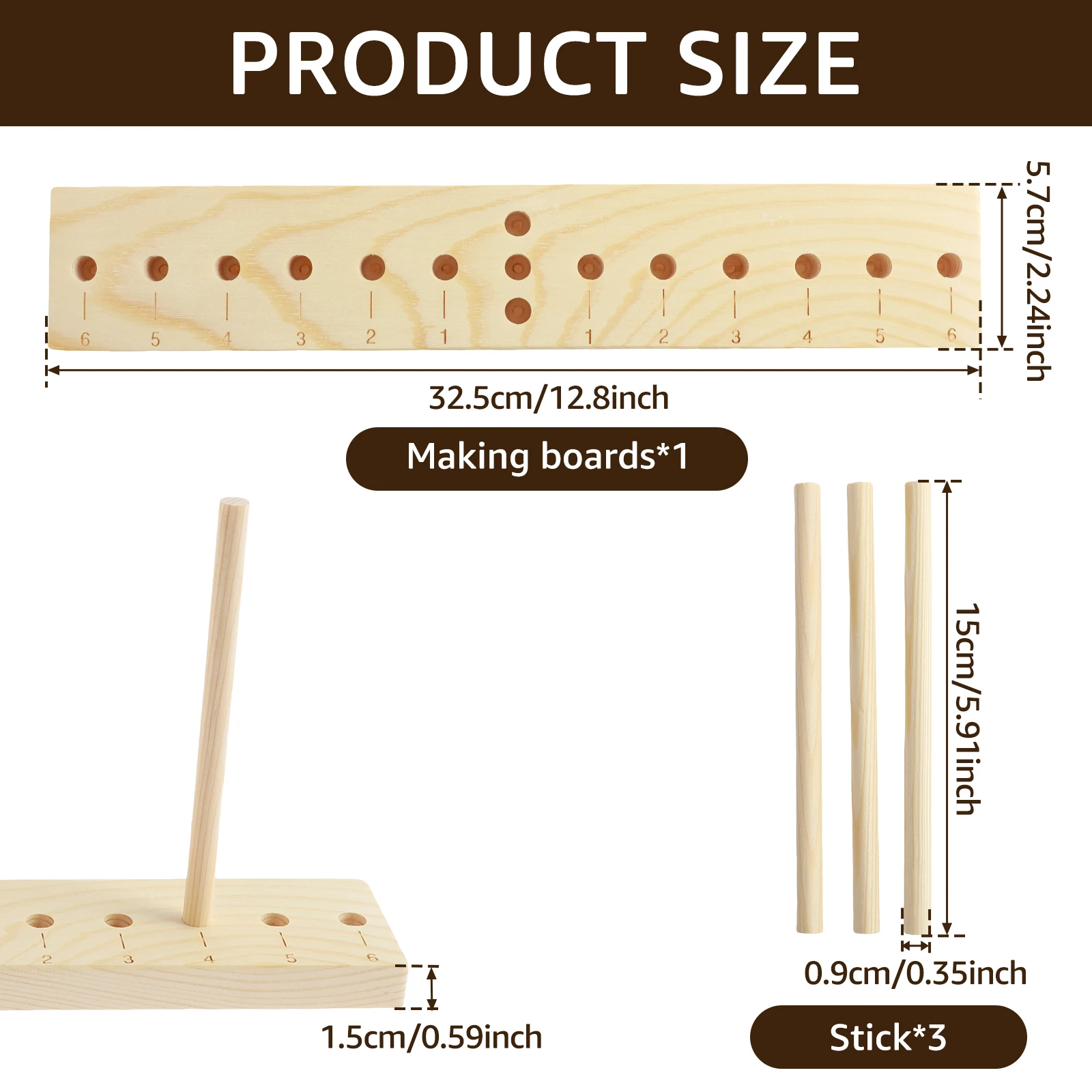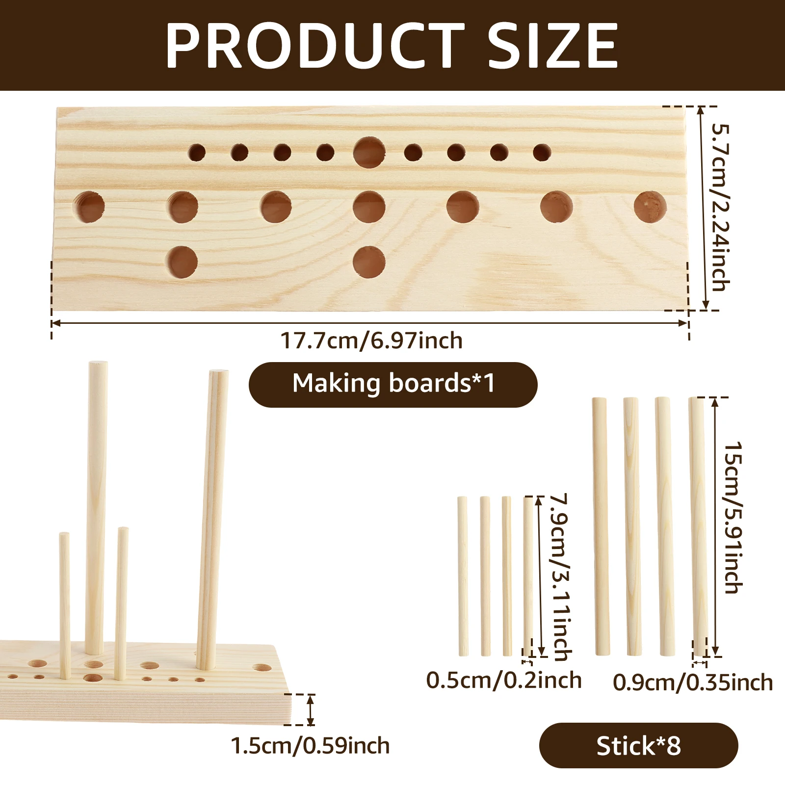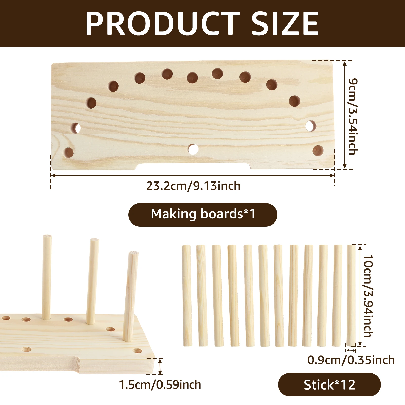 Tahta Çubuklar: 15 x 0,9 cm / 5,9 x 0,35 inç
