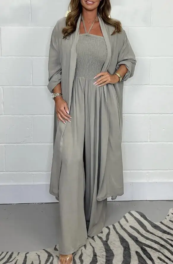 Kadın İşe Gidiş Tulumu Yazlık Düz İnce Dış Giyim Seksi Bağcıklı Pileli İnce