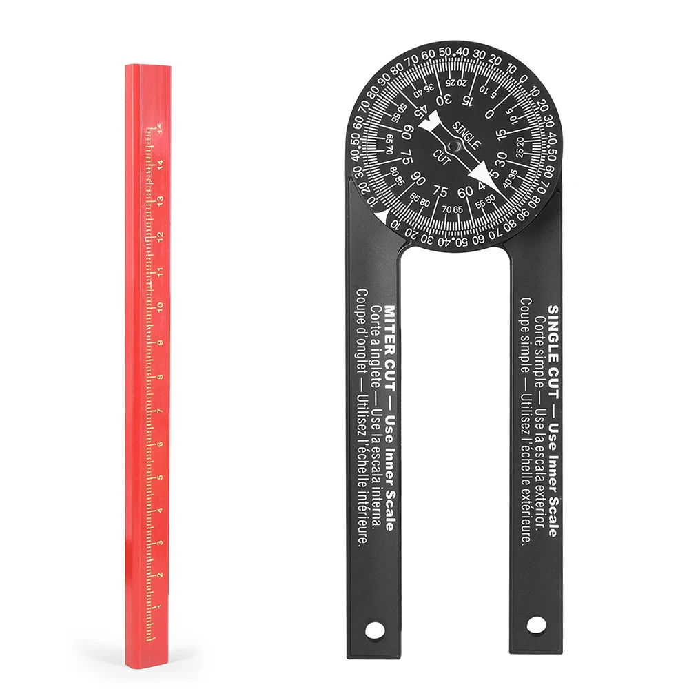 Marangozluk Ölçeği Gönye Testere Açı Ölçer 360° Kalemli Açı Ölçer